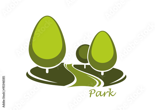 City park with green yard, trees, grass, trees and City skyline, cartoon public garden landscape