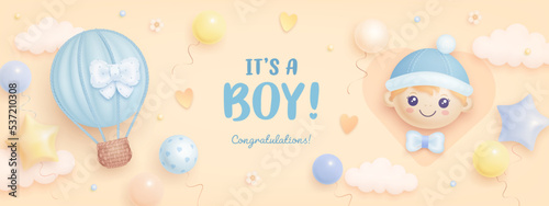 Elegant beige realistic balloons Happy Birthday celebration card banner template. Set of festive cards for birthday party, anniversary or other events. Celebration, congratulations, invitation concept