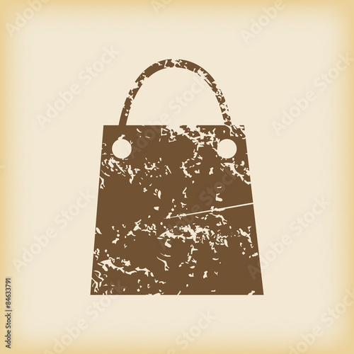 Hand holding a laptop bag or briefcase. Retro, vintage grayscale design with halftone and dotted texture, symbolizing business and work. Vector illustration isolated on white