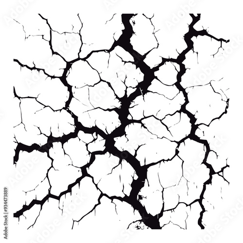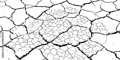 Crack on the surface of the earth, fracture texture. The rupture vector isolate on white background.