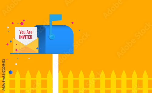 "you are invited" on mailbox home depot with open space for your text. Invitation on  mailbox home depot.