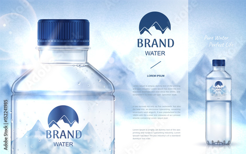 Lemons, ice cubes and water drop elements on blue background. Fresh lemonade or lemon beverage realistic banner