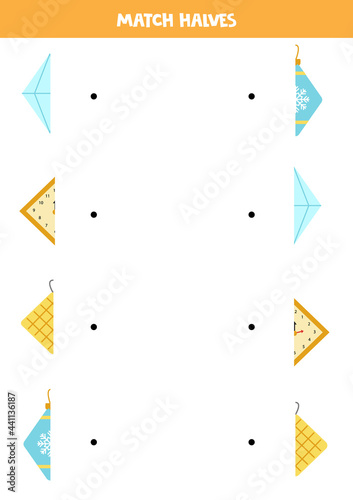 Counting game with cartoon Christmas accessories. Math worksheet.
