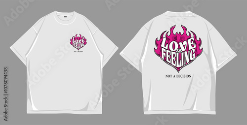 Design oversize street wear love feeling not a decision  mockup t-shirt white front and back