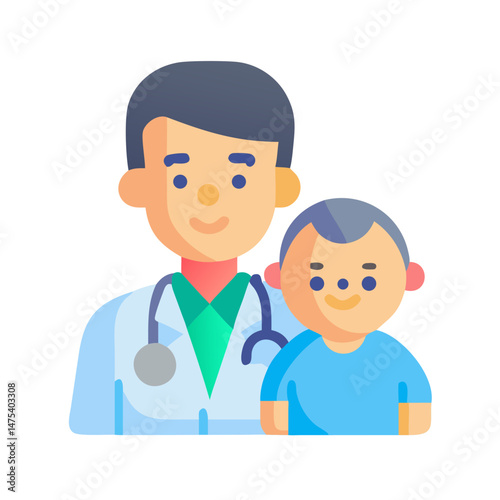 Illustration of Pediatrician and Child Checkup. Doctor Examining a Young Boy with a Stethoscope for General Health
