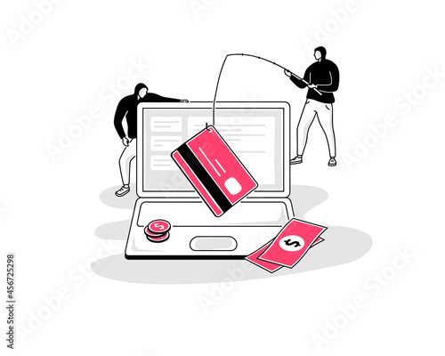Hacking phishing attack. Internet phishing, internet security concept. Flat vector illustration