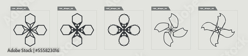 Set of abstract geometric shapes. Flat vector illustration with 3d wireframe models or brutalism forms. Concept psychedelic techno style.
