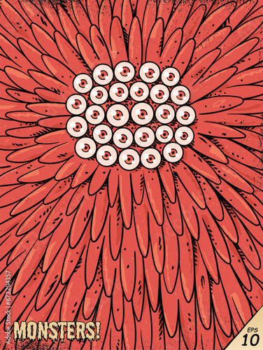 Trendy Abstract Urban Futuristic Street Art Graffiti Style Background With Big Eyes Illustration