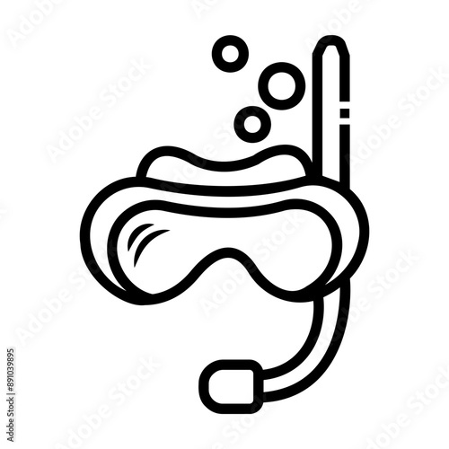 summer beach or holiday related summer beach swimming snorkel or glasses with pipe vector with editable stroke,