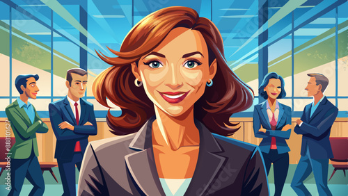 Modern city hall with glass facade, spacious plaza in front, and a flagpole standing tall nearby, vector illustration art