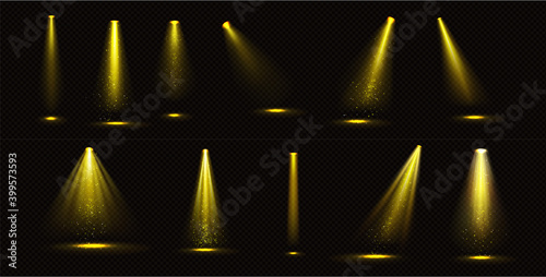 Vector set of light source. Light from a spotlight png. Studio, studio lighting png. Spotlight png. Yellow light. Light effect.
