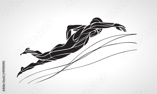 Vector image of a swimmer.It is drawn in the style of engraving. swim icon.