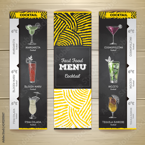 Cocktail chalk drawing design sketch. Document template. Corporate identity