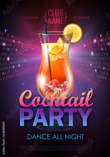 Disco cocktail party poster vector illustration
