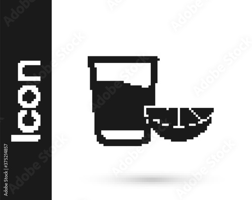 Black Tequila glass with lemon icon isolated on white background. Mexican alcohol drink. Vector.