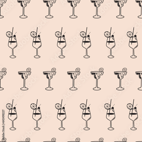 Seamless pattern Cocktail beverages sketch background