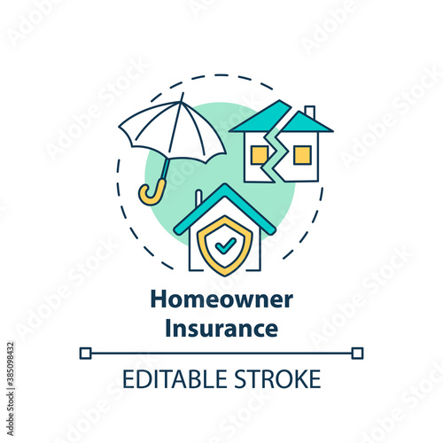 Homeowner insurance concept icon. Mortgage payment element idea thin line illustration. Home warranty. Insurance premiums. Vector isolated outline RGB color drawing. Editable stroke