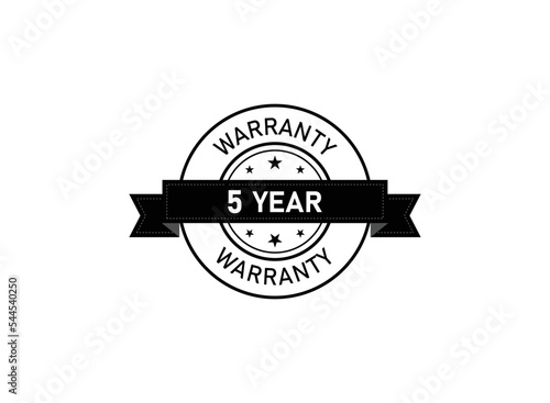 5 year warranty vector icon. color in black, minimal warranty logo.