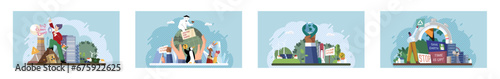 Rural Climate Adaptation. Rural communities and their adaptation to changing climates. Icon set. Set Logo of Rural communities and their adaptation to changing