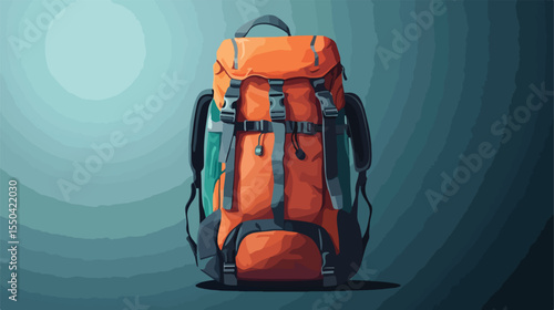 Illustration of a hiker using a map and compass during a mountain trek adventure
