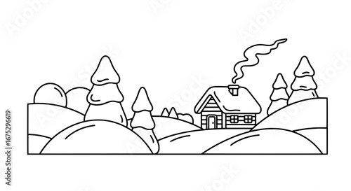 Snowy mountain landscape illustration for winter sports and outdoor adventure seekers with skiing and hiking trails