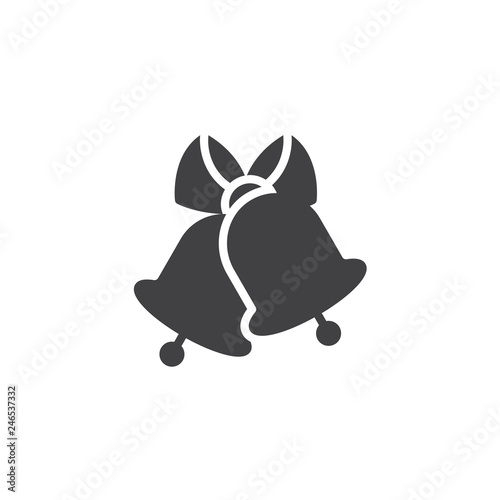 Black and white vector of two festive bells tied with ribbon perfect for Christmas, weddings, and celebratory design projects