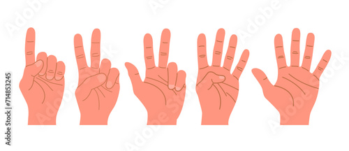Hand gesture sign vector. Set of counting on fingers. Five wrist icons with finger count in cartoon style.