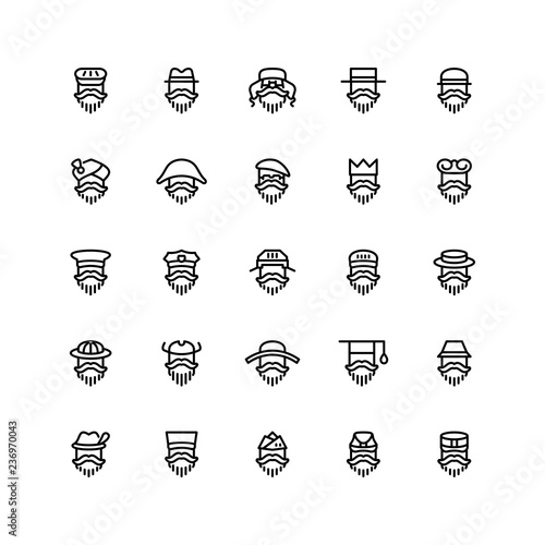 Twenty five  icons of men wearing different kinds of hats isolated on white background. Emoji and avatars flat style set.
