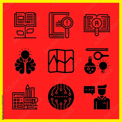 Simple 9 icon set of edication related book, science, ebook and knowledge vector icons. Collection Illustration
