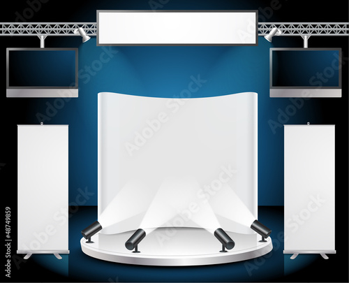 Grand Exhibition stand display mock up. High detailed 3d Vector illustration.