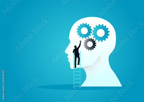 Brains icon and water tap symbol with Knowledge filling concept.Thinking process brain and quick learning concept.Vector illustration.