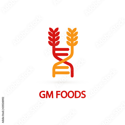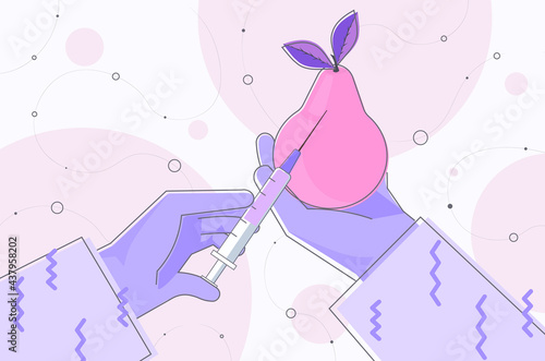 Bioengineering, biotechnology. Food additives. Genetic engineering. Genetically modified foods, GM foods, genetically engineered foods concept. Vector isolated concept creative illustration