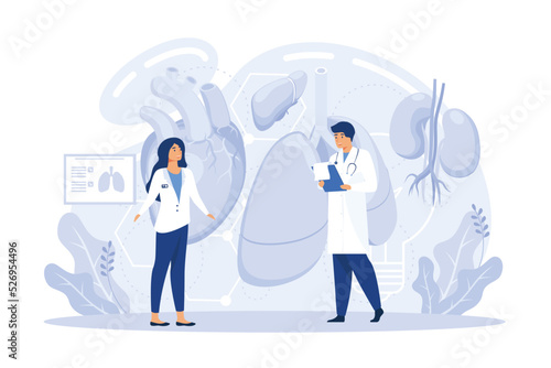 Bioengineering abstract concept flat vector illustration. Genetic engineering, genetically modified organism, lab-grown organs, dna manipulation, stem cells, transplantation
