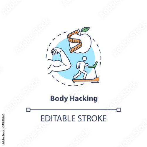 Mind hacking concept icon. Brain training, biohacking idea thin line illustration. Cognitive functions enhancement, memory improvement. Vector isolated outline RGB color drawing. Editable stroke
