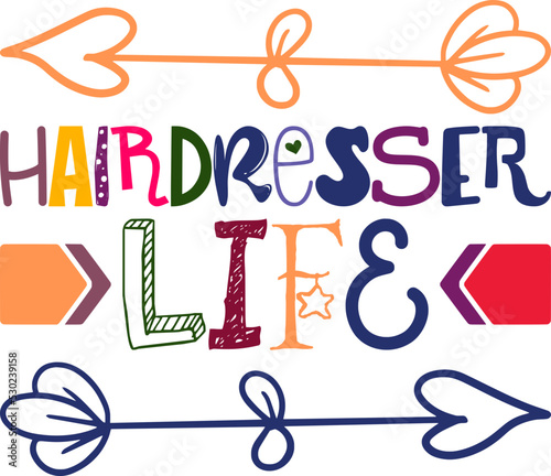 hairdresser making female customer hair in a hair salon and cartoon girl and cartoon boy with hand-drawn cartoon art vector illustration