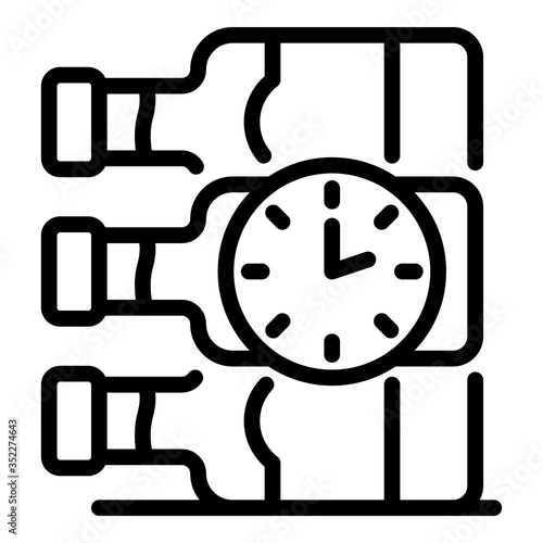Wine bottles and clock icon. Outline wine bottles and clock vector icon for web design isolated on white background