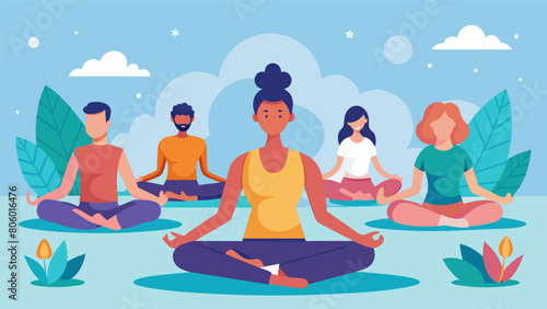A yoga class infused with calming instrumental music to help participants relax and find inner peace.. Vector illustration