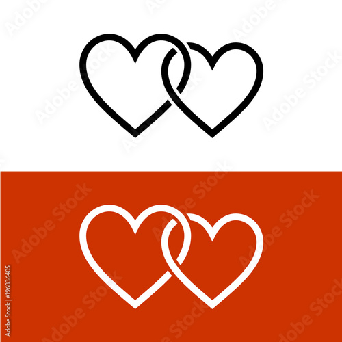 linked hearts icon vector illustration flat logo design. Simple Hand Drawn. Retro style. Perfect For Poster, Card, Invitation, Tshirt Print or Valentines Day Greeting Card. Vector illustration