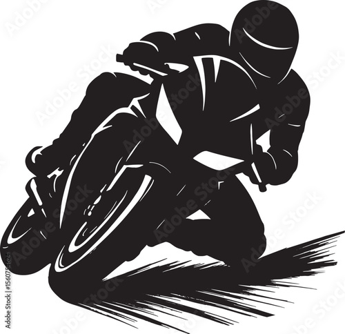 Black And White Silhouette Racing Motorcyclist Speeding Motorcycle Track Dynamic Action vector 1
