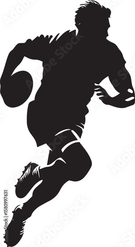 Intense Vector Silhouette of a Man Parkour Runner Executing a Vault Maneuver in the City