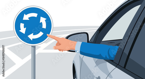 Driving Safely Observe Traffic Merge Road Sign Driver Wearing Sunglasses