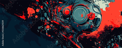 Cybernetic Guardian: A formidable mechanized soldier defiantly waves a banner, embodying strength and resilience in a futuristic and intense illustration.