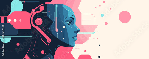 Futuristic abstract profiles with geometric designs and technological elements - vector