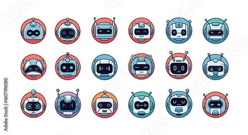 Robotics and ai neon linear icon set. featuring robot, ai, automation, neural network, cyborg, and drone symbols