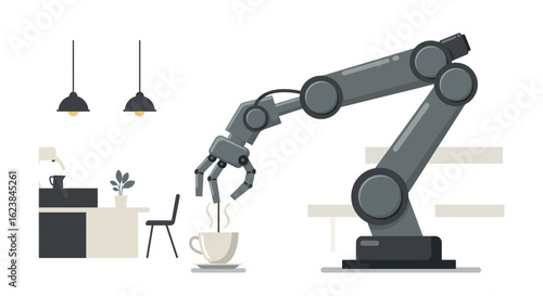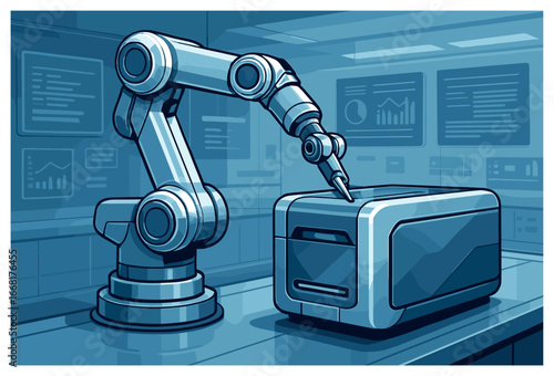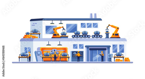 Automated manufacturing process with robotic arms in factory setting for industrial innovation concept vector illustration