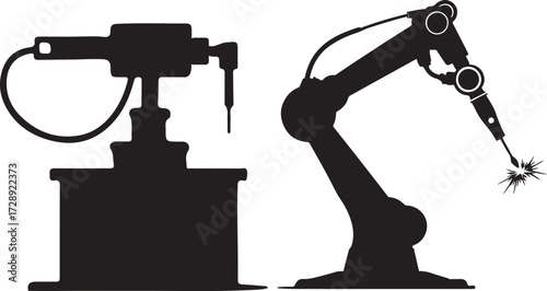 Silhouette Robotic Arm Icons Set. Automation, Technology, Machine, Industry Vector Illustration