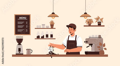 Coffee Shop Mishap Young Barista Accidentally Spilling Iced Drink In Lively Cafe