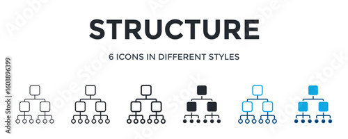 Business structure icons depicting organization hierarchy, management workflows, teams, finance, governance, approval, integration, and operations in clean outline, editable stroke