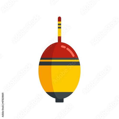 Float icon with weight and hook. Colored cartoon image of complete fishing attachments. Isolated vector illustration on a clean white background.