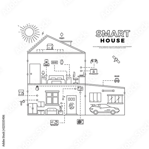 Infographic smart house technology system with cutaway diagram, illustrator vector